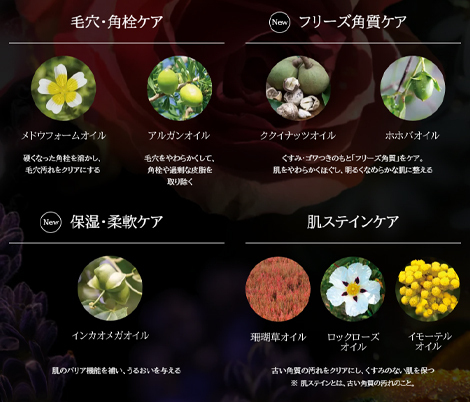 ◆ポイント2◆毛穴・角栓ケアや保湿も!8種類の植物美容オイルを配合