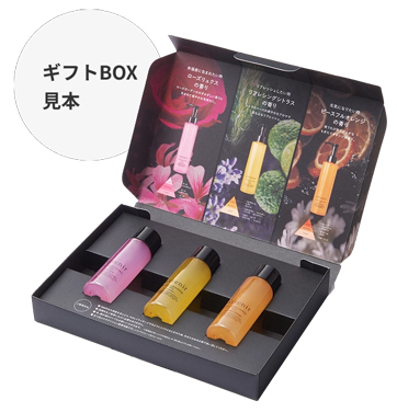 ☆ローズリュクス・リフレシングシトラス ・ピースフルオレンジの3種類が入った、高級感のあるギフトBOXでお届け!