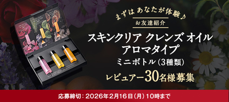 紹介したお友達には、「スキンクリア クレンズ オイル アロマタイプ」ミニボトル(3種類)をプレゼント☆