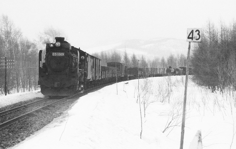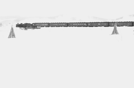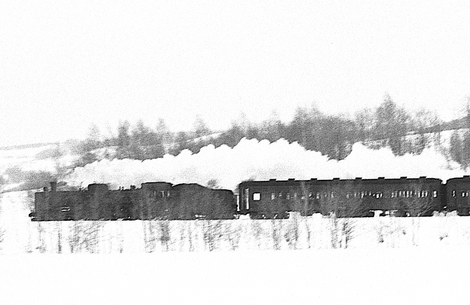 大雪原で3時間ほど徘徊した結果、C551号機牽引の普通旅客列車をモノにすることが出来ました。そしてこの列車は静かに大雪原の中を、長い客車を牽いて遠ざかって行きました。 -