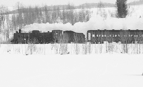 大雪原で3時間ほど徘徊しました。そして、C551号機牽引の普通旅客列車をモノにすることが出来ました。これが多分今日の唯一の成果だと思うので、ズームと105㎜望遠を付けた2台のカメラでシャッターを押しまくりました。勿論三脚なしです。-
