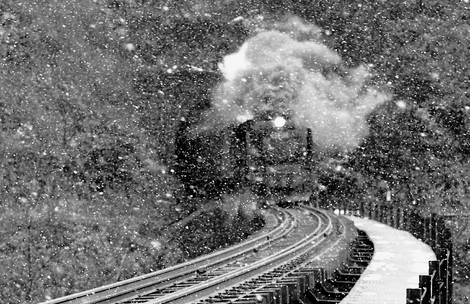 本命となる3重連も、激しい降雪の中での撮影で、蒸気が思いっきり凝結して殆ど機関車を隠してしまいました。後で現像して、一応3輌のデコイチが識別できて嬉しかったです。当時はフィルムの時代でしたので、その場で出来栄えを確認することは出来ませんでした-