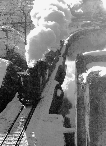 まだ只見線と会津線が繋がっていない時代です。そして、C11248号機も短い貨物列車を牽いて、雪景色の只見川沿いに発車して行きました。