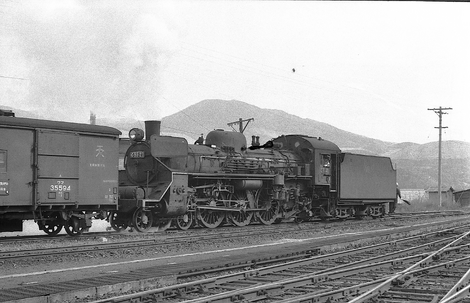 C5510号機と入れ替わりに隼人方面からやって来たC5527号機は暫く貨物の入れ替え作業をやっていました。この蒸機は流線形改造型ですが、安全弁の取り付け方が特徴的でした。