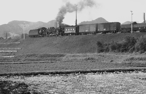 C5527号機の貨物の入れ替え作業は精力的で、貨物ヤードをはみ出してやっていました。