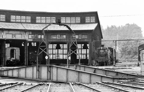 6連の扇形庫に近付いてみると、奥にナンバーは確認できませんでしたが、C58が1輌いてました。そして外壁に接して火を落としたC5899号機が佇んでました。