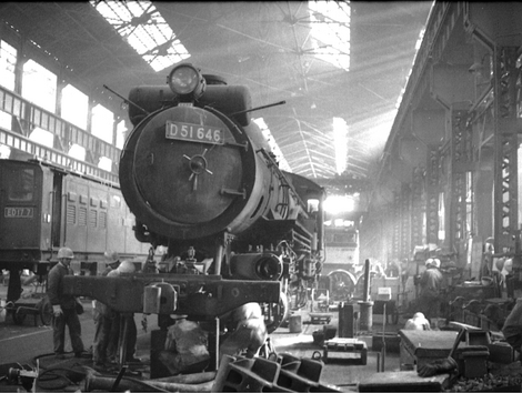 そしてこの日、津田技術主任は国鉄工場も案内してくれました。工場の中は広い格納庫の様で、修理中の機関車が6輌程いました。最も目立ったのがこのD51646号機で、丙修繕中でした。奥には古典電機のED177号機や当時新鋭のEF61が居ました。
