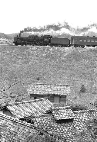 重油併燃装置を付けたC5780号機が普通旅客列車を牽引して、高い築堤を颯爽と走り抜けて行きました。出雲の甍は美しいと言われてますが、まさにその通りでした。