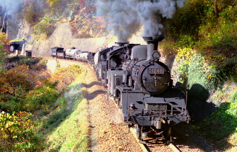 色づく秋の渡良瀬渓谷です。ここでの最後のショットはやはり機関車のフォーカシングです。足尾線の蒸機は一様に綺麗でしたが、特にこのC1246号機は黒字の肌がきれいでした。