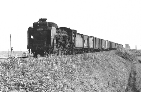 そしてこの付近で、上下2本の貨物列車を撮りました。これはD51513号機の牽く上り列車です。平成17年にこの付近で大規模な脱線転覆事故がありました。特急「いなほ14号」が突風に煽られたのです。