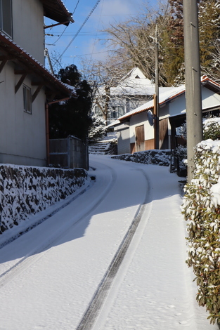 ここは注意報止まりで、今朝の積雪を見ると路面には2cmほどありますが、昨日午後から冷えこみ始めたようで、畑には路面以上の積雪のようです。
