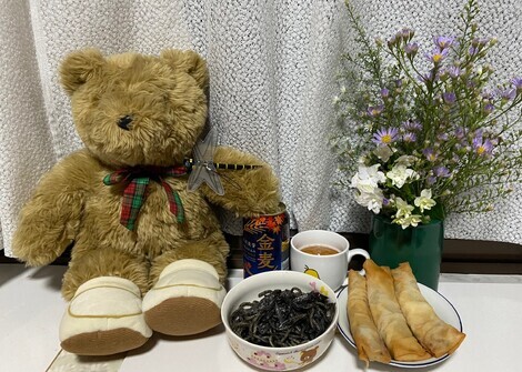 これは友の手製春巻き。トースターでチンしてカリカリ。