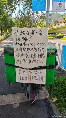 ※写真は中国国内のものらしいですが、いちいち翻訳はしませんけど、主なる敵アメリカ帝国主義を打倒すべし、我々中国庶民の生活を脅かすのはアメリカ大資本だと主張しています。