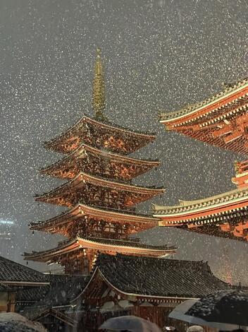 ※そういう訳で1月2日夜の、東京各地の降雪写真です。浅草浅草寺、八王子駅前、東京駅丸の内口、東京タワーです。