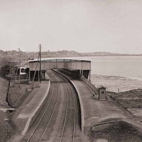 ※写真は明治時代の品川駅だそうです。海辺の小さな地方鉄道線のローカル駅みたいな作りです。