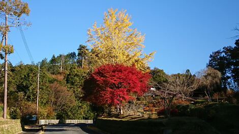途中、米の刈り取りが終えた畑や柿の実がたわわな農家の庭先を見ると、「秋景色、いいなぁ、ちょっとスケッチして写真でも、」と気軽に車を降りそうになり、オットさすがにやめました。