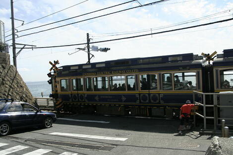 12分ごとに江の電が通過 静かな踏み切りでしたが