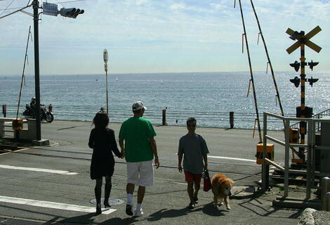鎌倉高校前の踏切 Google地図のストリートビューで見ると
