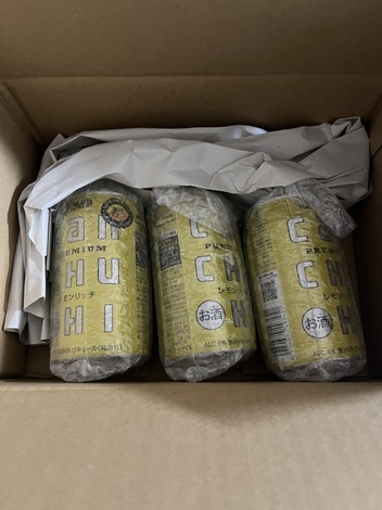 上記写真を見ていただければ気づいてもらえるかもしれませんが、それぞれ1缶ごとに緩衝材での包装その上からちゃんと隙間を埋めての発送。心配りが本当に感動です。
