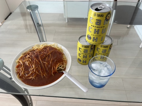 1)土曜のお昼に飲んじゃいました~♪ 妻が子供を連れて買い物に行くというので、病み上がりだった私は家で過ごすことを提案。自分ひとりの時間をゲット!運転もないのでお昼に当選したcanチューハイを飲むことを計画。他の皆様みたいに美味しそうなメニューではないですが大好きなスパゲッティを作って飲むことに。少しの家事を済ませて早々にスパンゲッティを作り始めました。
