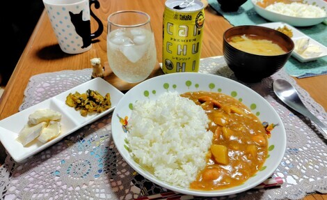 1) 休日の夕食時に。カレーライスと一緒にいただきました!