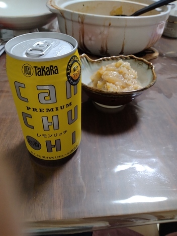 1)週末の家飲みで、家族と一緒に夕食を囲みながらいただきました。おつまみは鶏のから揚げとポテトサラダ。油ものの料理に合わせても、レモンの爽やかさが口の中をすっきりさせてくれて、食事が進みました。