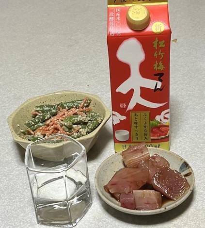 咲いたのに、ちょい寒で焼酎にしました。