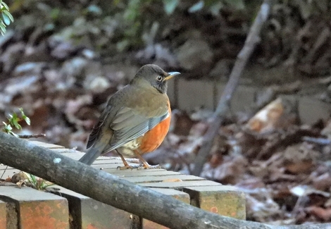 アカハラという名の小鳥です。鳩より少し小型です。