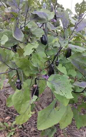 暑すぎの時は実が小さくかたかったですけど、すんなりとしたナスがなってきました。