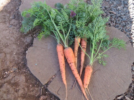 ニンジンに不織布を掛けていたましたけど、さらにビニールトンネルをしたらどんどんと大きくなってきました。♪(^∇^*)