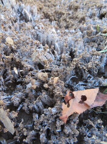 水曜日に雨が降り、今朝は寒かったので霜柱が立ちました。
