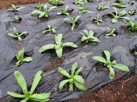 マルチはそのままだったので、めくって石灰と肥料を撒いて軽く土と混ぜて