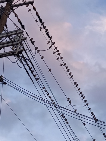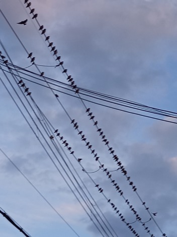 電線に凄く沢山鳥が留まってますね。
