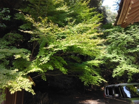 又明日 山の青いモミジです