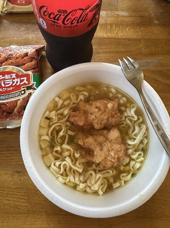 昼食で食べました。スパイスが効いていて美味しかったです。それに唐揚げの衣にカレーうどんのスープがよく染み込んで、こちらも美味しかったです😋