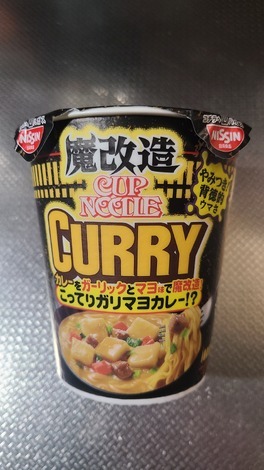 今日は、日清「魔改造カップヌードル カレー」を食べました。カレーヌードルにマヨネーズというよりカレー風味のガーリックマヨネーズヌードルという味わいで、コク深くまろやかな味わいのカップヌードルでとても美味しかったです。