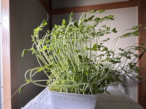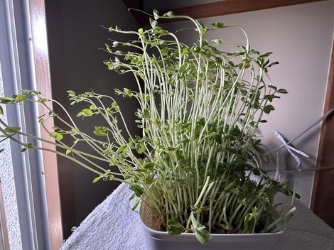 ばんちゃです〜♪買ってるのを忘れてしまって…豆苗向きを変えてみたら…使うの忘れてしもうた😅 向き変わってるし夜冷えます〜 寒かですばい風邪🤧ひかんごとして下はれ〜