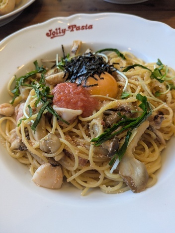 「ヤリイカと舞茸の焼き明太子スパゲッティ」、