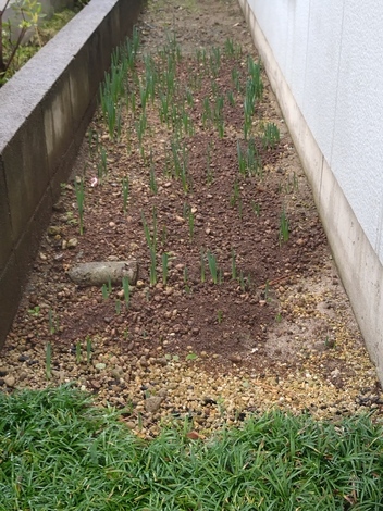 おはようございます😊今朝の雨風☔🌀は凄かった😱今年も早々と芽🌱が出ました。ニラじゃないよ。水仙の芽🌱球根が浅植えだったのかな~🤔