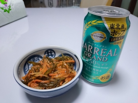 おばんです😊今日は1日中☔でしたよ〜今夜は松前漬けで1杯🍺😋