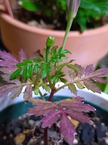 おばんです😊師匠は今日が仕事納めですね。今年1年お疲れ様でした。未来さん、マンゴープリンと杏仁豆腐、どちらも美味しそうですね。両方頂いちゃいましたか?😊部屋を片付けていたら、マリーゴールドのちっちゃい蕾がありました😊