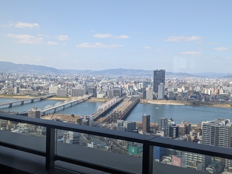 こんばんは。未来さん、眺めのいい写真をよく見ると、謎の橋が1本ありますね。川は大阪と言う事なので淀川なんでしょうけど。一番右は鉄道橋で隣が道路橋ですよね。そして、一番左側も道路橋。謎なのは右から3番(左から2番目)の橋です。立派なアーチ橋ですが、ビルに突き刺さっているように見えます😱何の橋ですか?