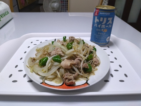 もやし炒めを作っていると、後ろでまろちゃんが吠えていました。