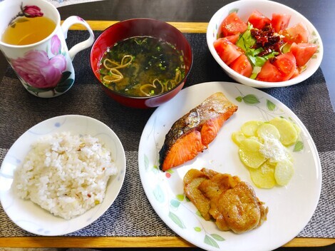 おはようございます🎶朝から やっぱり冷房ですわー 食事すると 💦がドバー 掃除しても💦めずらしく 朝和食❣
