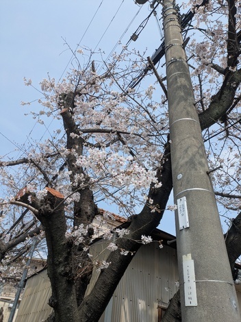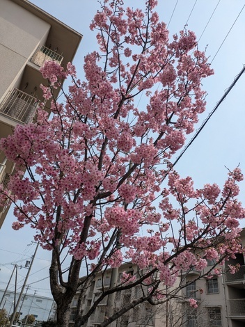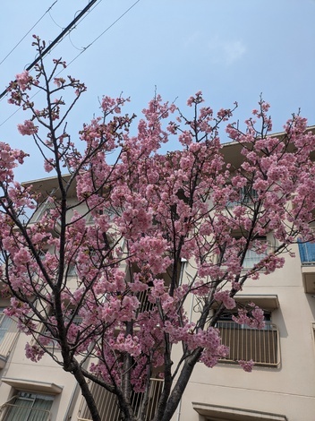 「緋寒桜」は、今が見頃、ソメイヨシノはまだまだこんな感じ、おまけにわざわざ、つい先日枝打ちしてた💦
