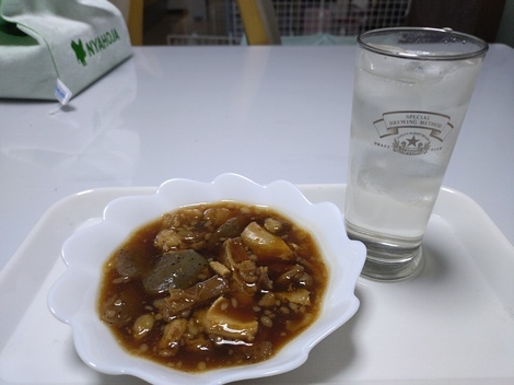 おばんです😊ようやくソメイヨシノが咲き始めてきました。今日は天気がよかったけど、風が冷たい。あいぼうの水割りと牛スジ煮込み🍲レンジで1分50秒チン😁