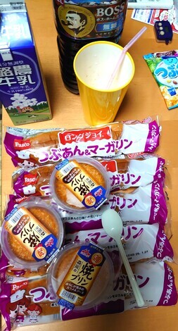 7:55そないに朝は食べれない・・赤長パン🥖1本プリン🍮が1っ精一杯なんです