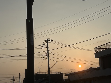 皆既月食見えたとか。朝方月と太陽が重なったのかな?今日は少し掛けてるね