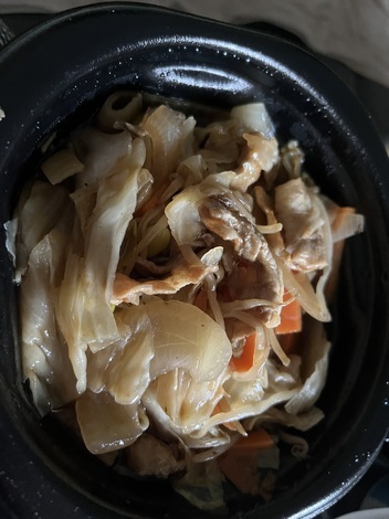 朝は昨日手を付けなかった肉野菜炒め半分食べました。