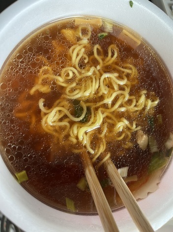 寝る前にに食べた。なんだったけな醤油ラーメン